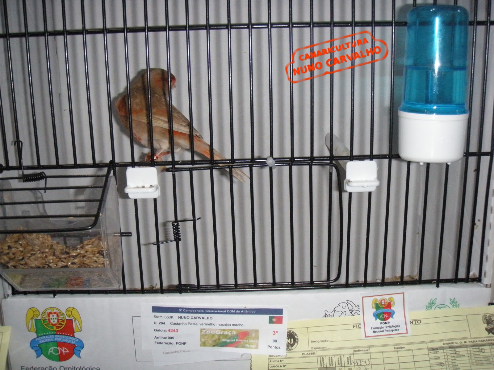 Para minha enorme satisfação e apesar de ter tido um mau ano de criação obtive o meu 1º prémio numa exposição, medalha de BRONZE no 5º Internacional Atlântico com 90 Pontos.. O facto de ter levado apenas 2 aves e uma ter ficado nos 3 melhores foi uma enorme vitoria para mim.. Fiquei ainda contente com o resultado da outra ave que levei a concurso, pois teve 89 Pontos, o que garante a qualidade da mesma..