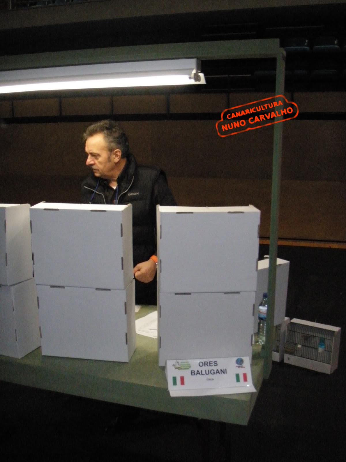 Com o convite de uma pessoa que considero um GRANDE amigo, Joaquim Cunha, lá fui eu ajudar nos 2 dias de Julgamento do Internacional Atlântico.. Só tenho uma palavra que encaixa perfeitamente nesta experiência "ESPETACULARI" como disse Ores Balugani, juiz de canários de cor que ajudei durante estes 2 dias, que por sorte minha é campeão do Mundo em Castanho Pastel Vermelho mosaico 2010 e tive a felicidade de trocar muitas ideias com ele, muitas mesmo.. De salientar o enorme profissionalismo com que Ores Balugani julgou as aves do qual ficou encarregue..